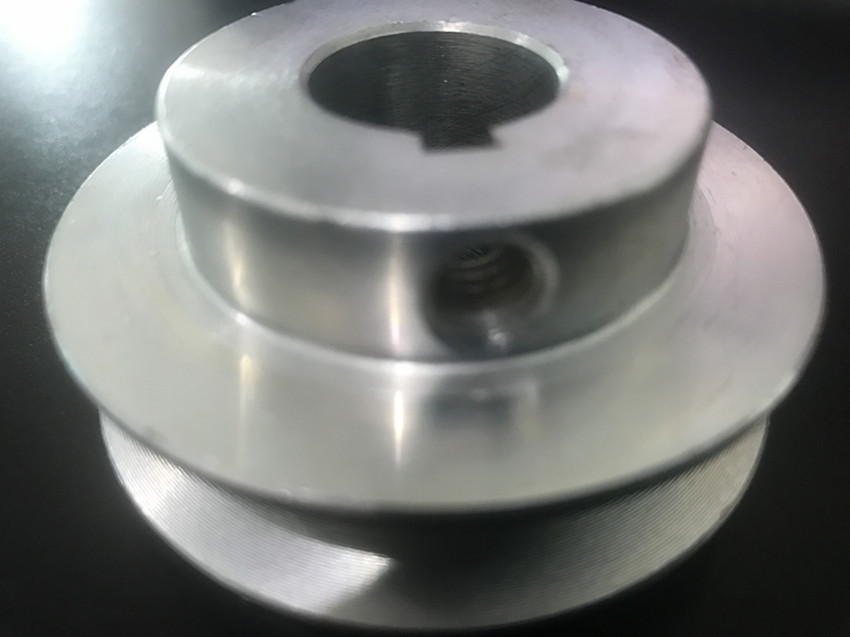 2600-109 V Belt pulley is made by material 1045, single groove belt pulley, with keyway and set screws, surface zinc plated.